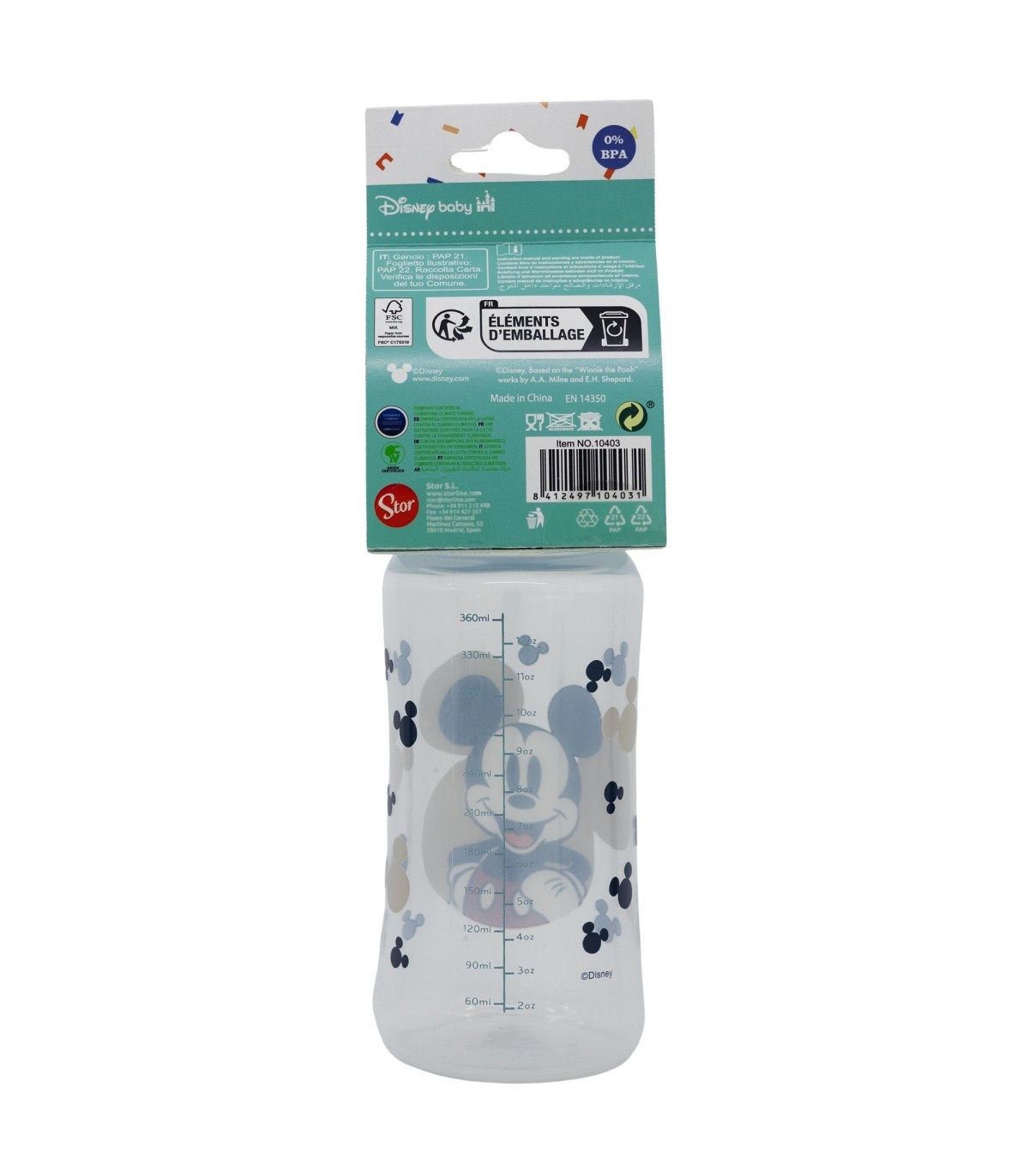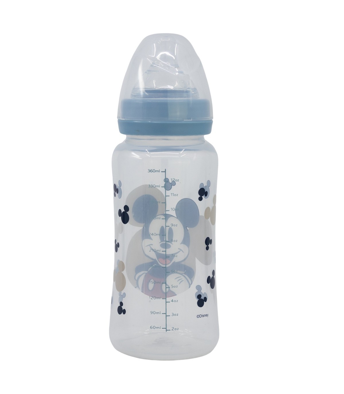BABY 12 OZ WIDENECK BOTTLE SILICONE TEAT 3 POSITIONS MICKEY MOUSE FULL OF SMILES
