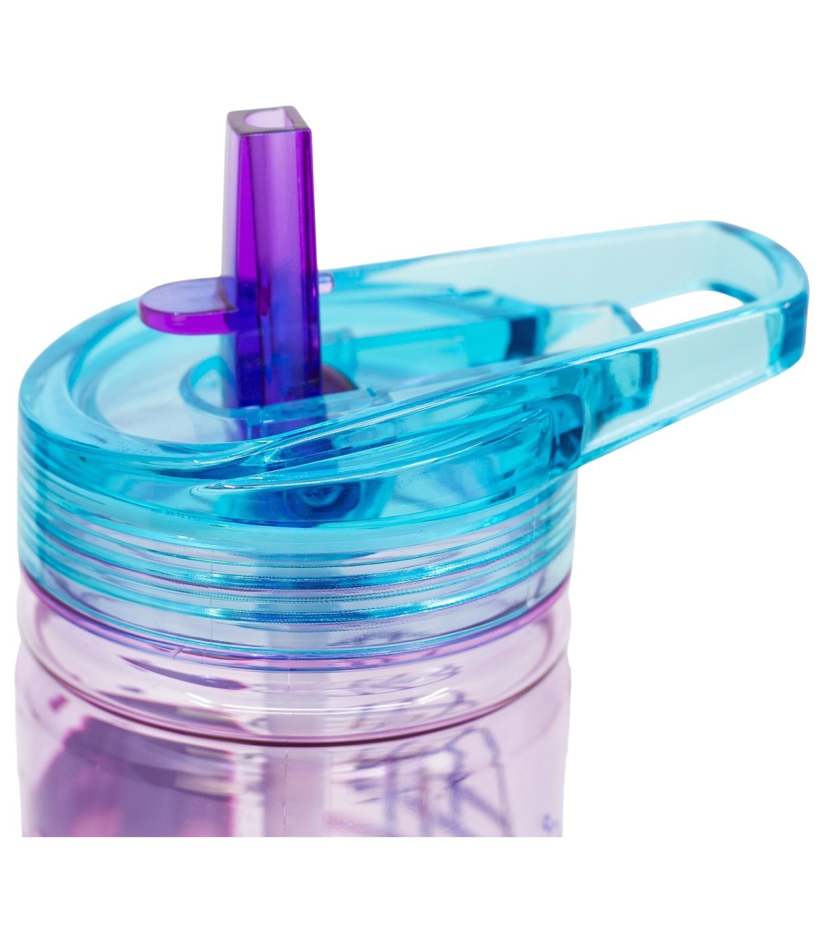 Practical reusable plastic bottle with handle and spill-proof flip-open spout for easy drinking.