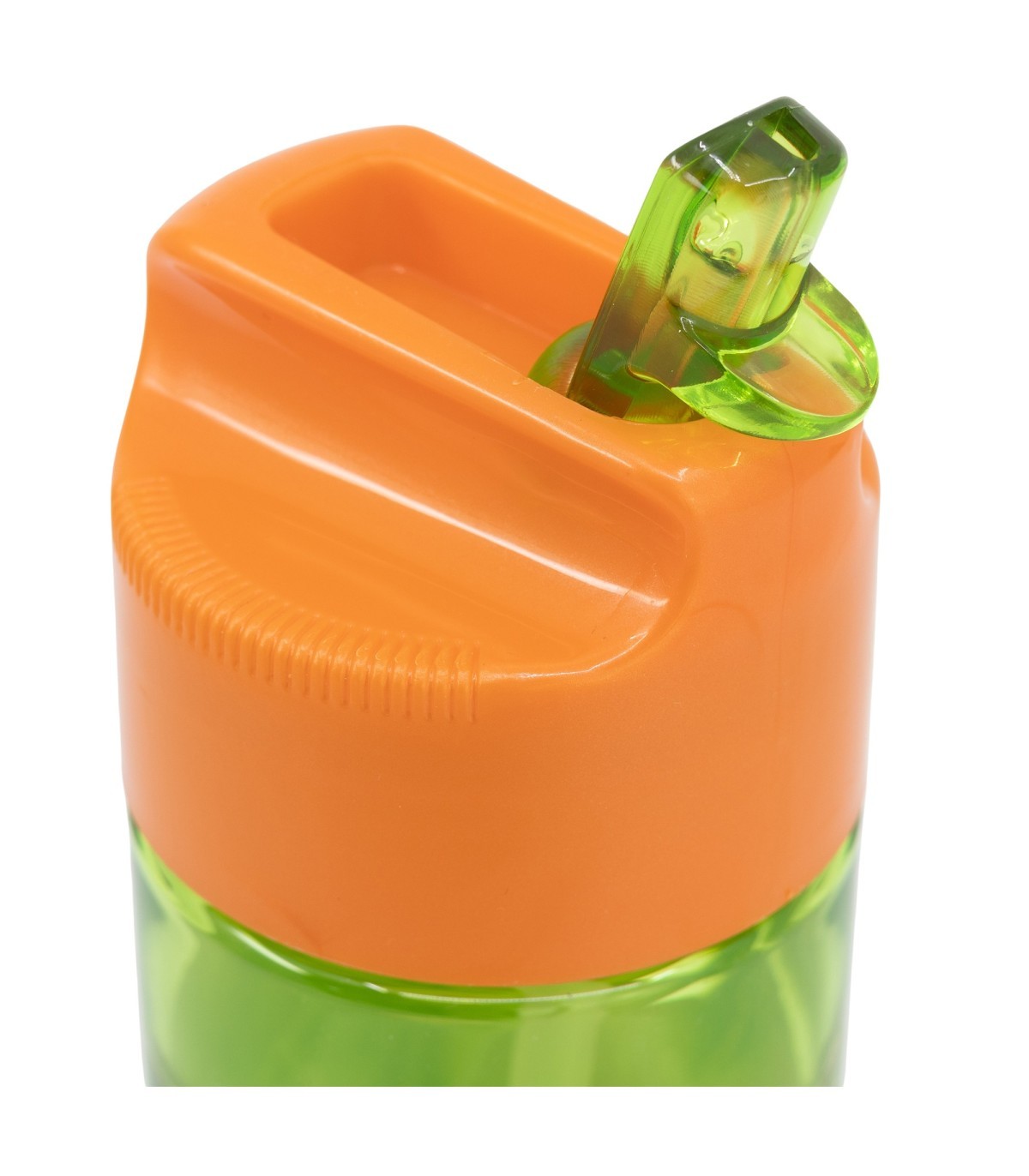 Practical reusable plastic bottle with a spill-proof flip-open spout for easy drinking.