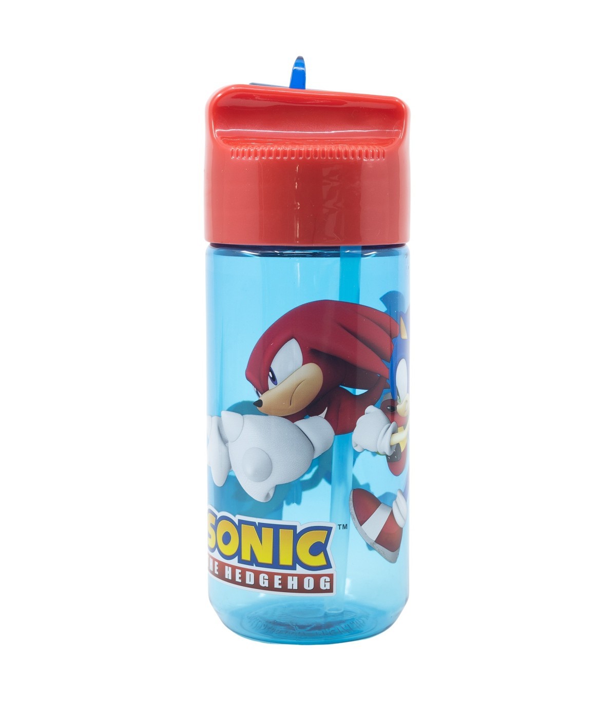 Practical reusable plastic bottle with a spill-proof flip-open spout for easy drinking.