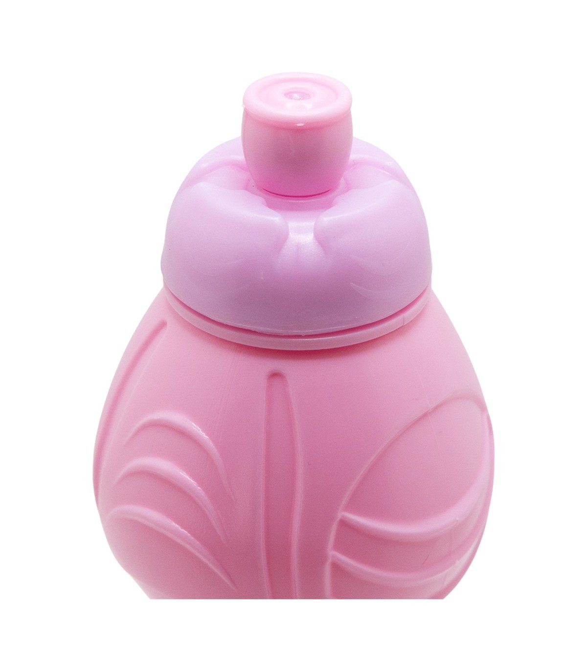 Reusable plastic children's bottle with an ergonomic shape, antidrip cap and antislip band.