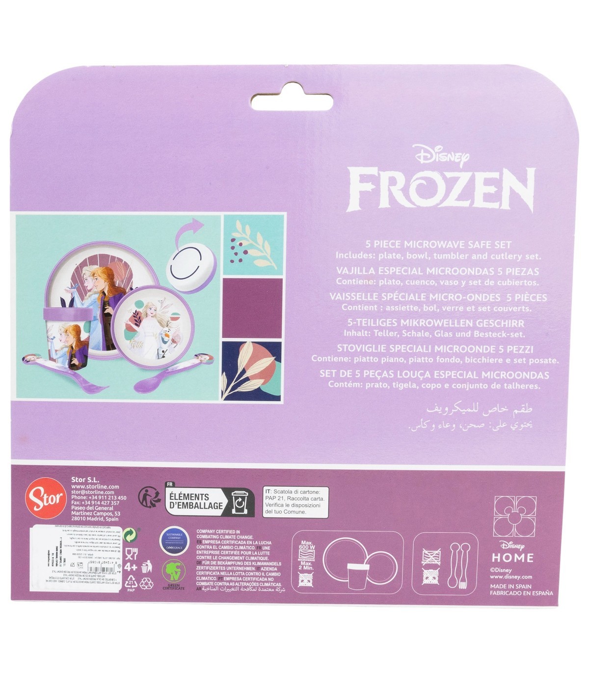 NON SLIP 5 PCS BICOLOR PREMIUM SET (PLATE, BOWL, TUMBLER, CUTLERY) IN STANDARD BOX FROZEN SNOWY TALE | Stor Brand