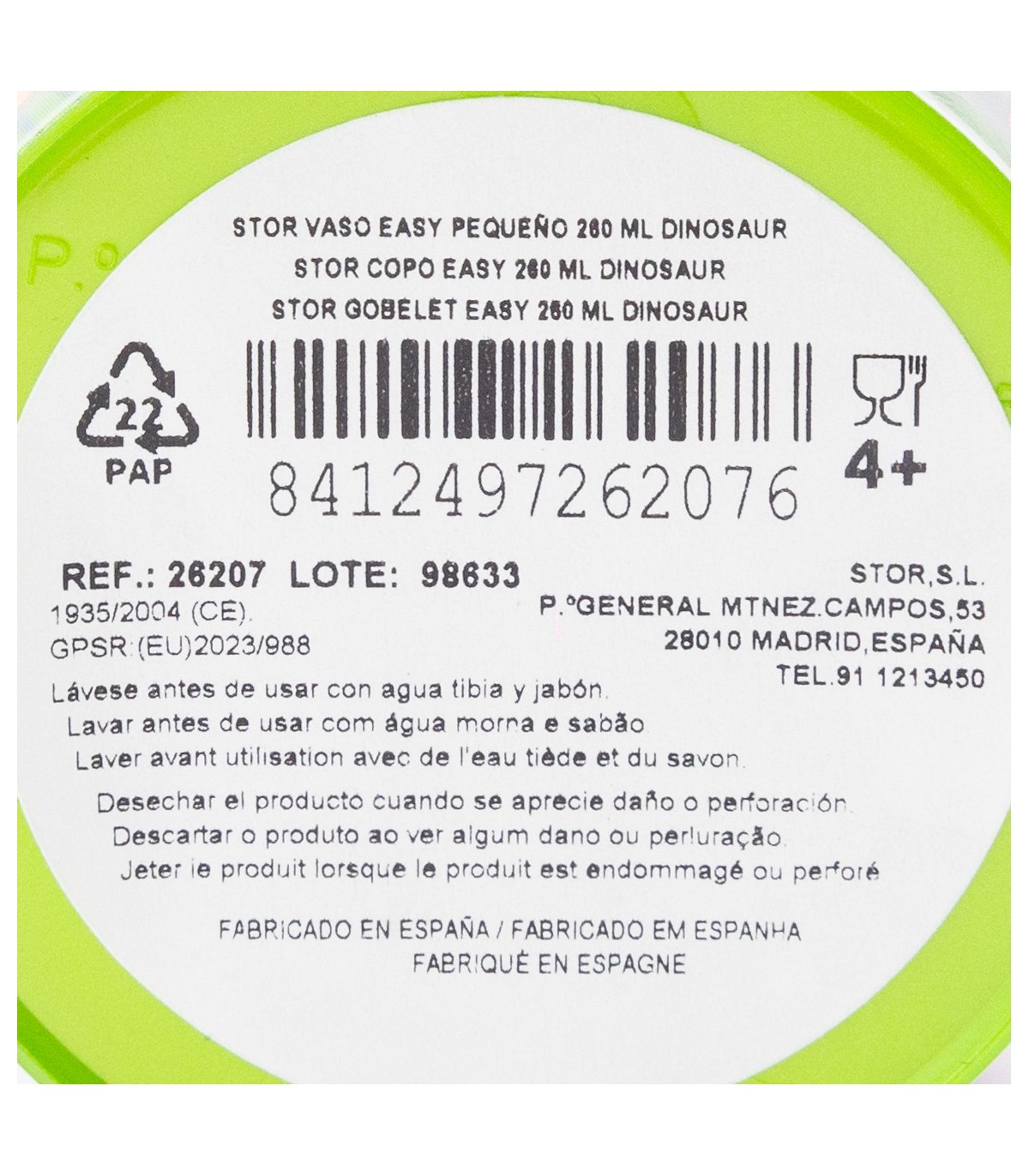 Wash the product before first use and after each use. Do not use abrasive sponges or harsh chemicals for cleaning. Store in a dry place, protected from dust. Do not overheat the product. Use it according to the indicated recommendations. Replace the product if it shows cracks, deformations, or changes in colour or texture. Improper use or visible damage may compromise its suitability for contact with food. Microwave safe. Dishwasher safe. Recommended age: 4+ years.