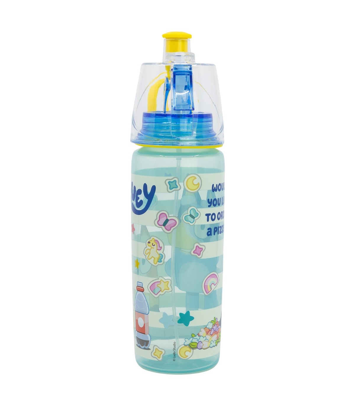 Botella de agua de plástico infantil con boquilla para beber y botón de pulverizar de 575 ml de Bluey