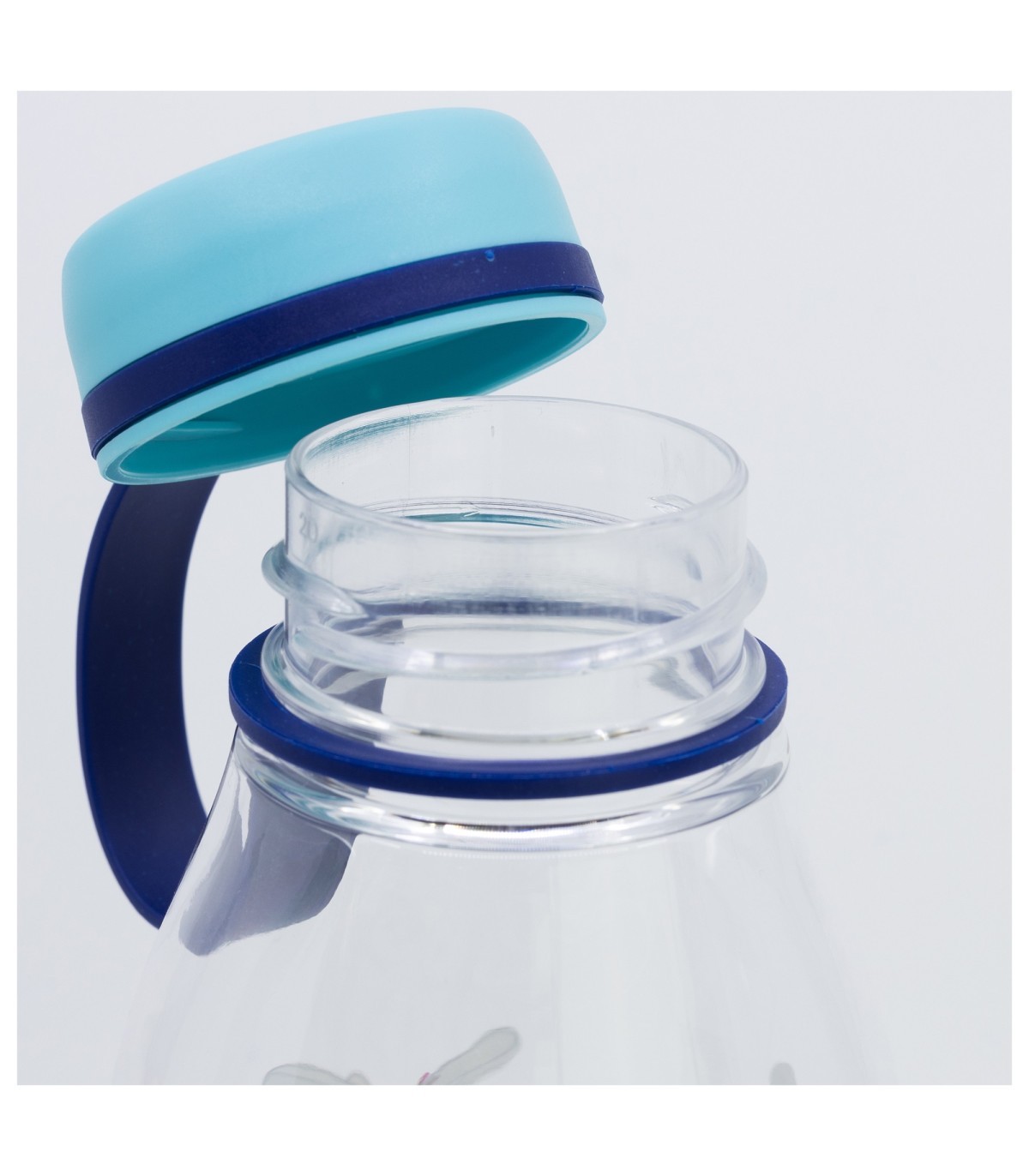 Resistente botella de plástico para beber con facilidad. Incluye tapón con asa y está decorada con los personajes más famosos, hará que los pequeños quieran llevarla a todas partes.