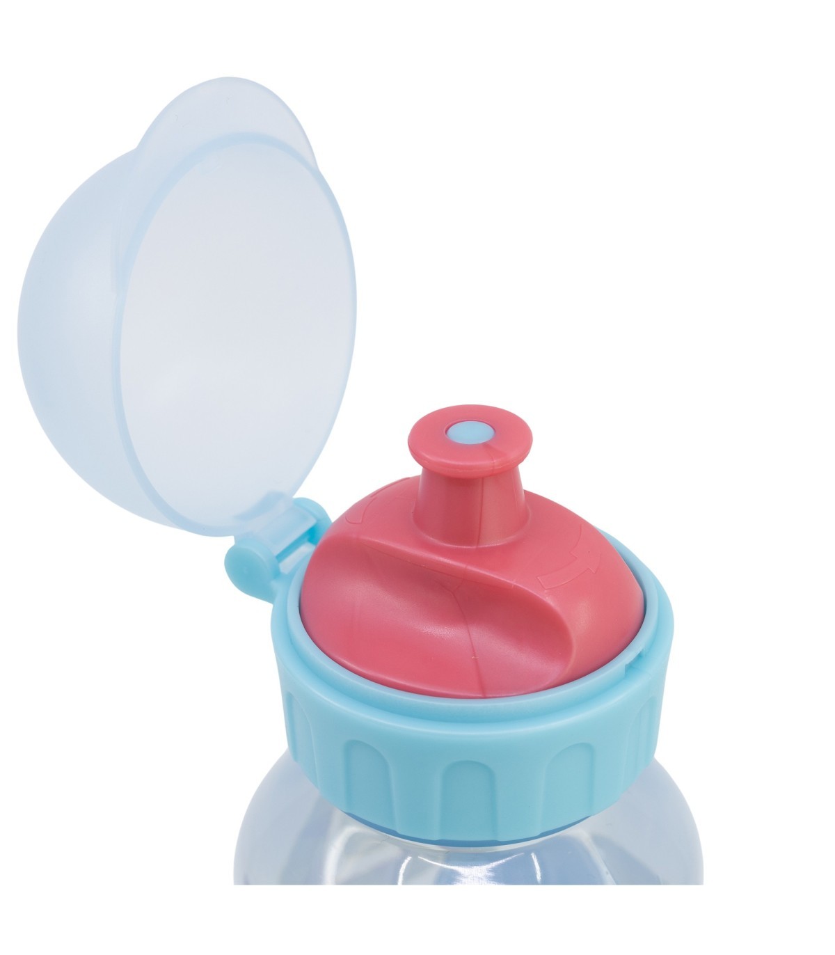 Resistente botella de plástico con boquilla y tapón de seguridad que evitarán salpicaduras y derrames accidentales.