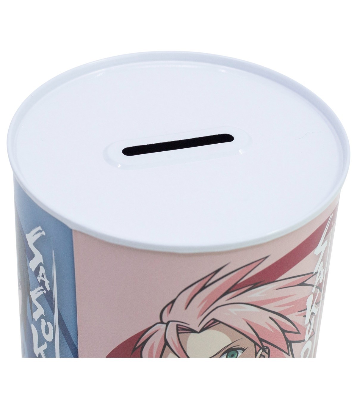 Práctica hucha infantil metálica para los ahorros de los más pequeños decorada con atractivos diseños basados en los personajes principales de sus series favoritas.