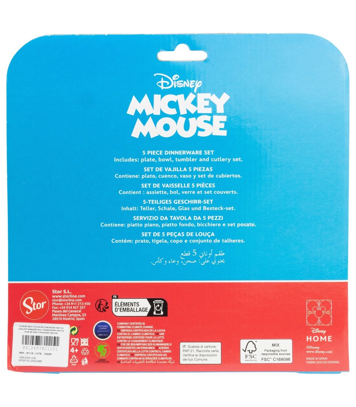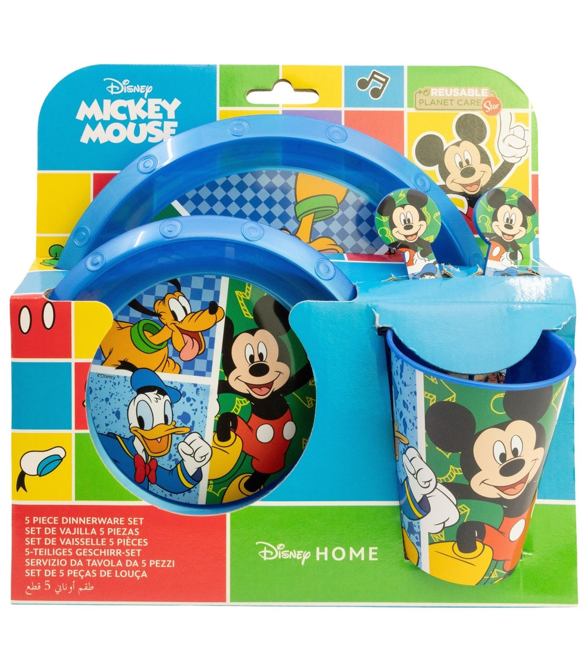 SET EASY 5 PCS (PLATO, CUENCO, VASO Y CUBIERTOS) EN CAJA MICKEY HAS FUN