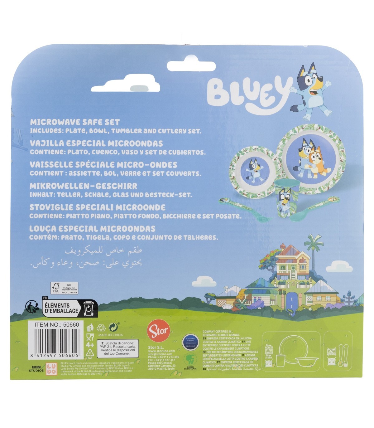 SET MICRO 5 PCS (PLATO, CUENCO, VASO Y CUBIERTOS) EN CAJA BLUEY