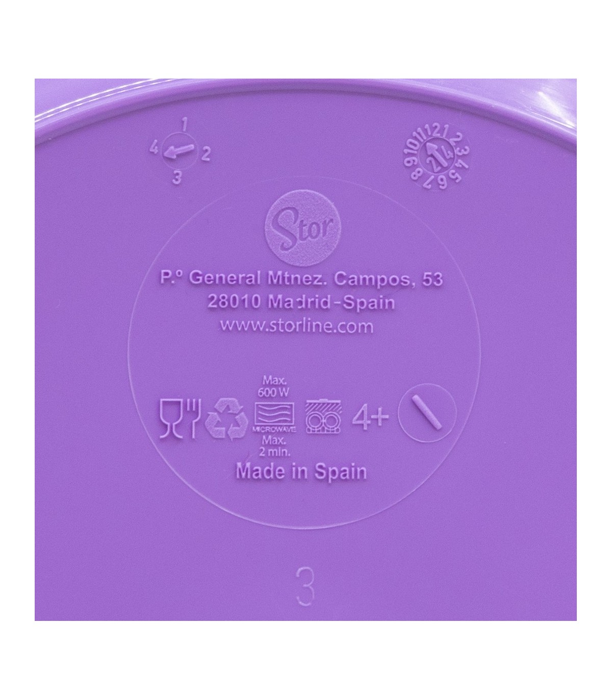 Lave el producto antes del primer uso y después de cada uso. No utilice esponjas abrasivas ni productos químicos agresivos para limpiarlo. Guárdelo en un lugar seco y protegido del polvo. No sobrecalentar el producto. Úselo según las recomendaciones indicadas. Reemplace el producto si presenta grietas, deformaciones o cambios de color o textura. El uso inadecuado o daños visibles pueden comprometer su idoneidad para el contacto con alimentos. Apto microondas: vaso, bowl y plato unicamente. Apto para lavavajillas: bwol y plato unicamente. Edad de uso: 4+.