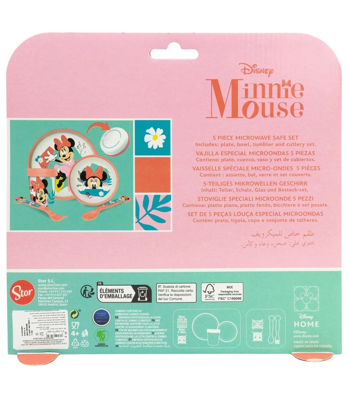 SET 5 PCS ANTIDESLIZANTE (PLATO, CUENCO, VASO Y CUBIERTOS) PREMIUM BICOLOR EN CAJA MINNIE SUNSHINE