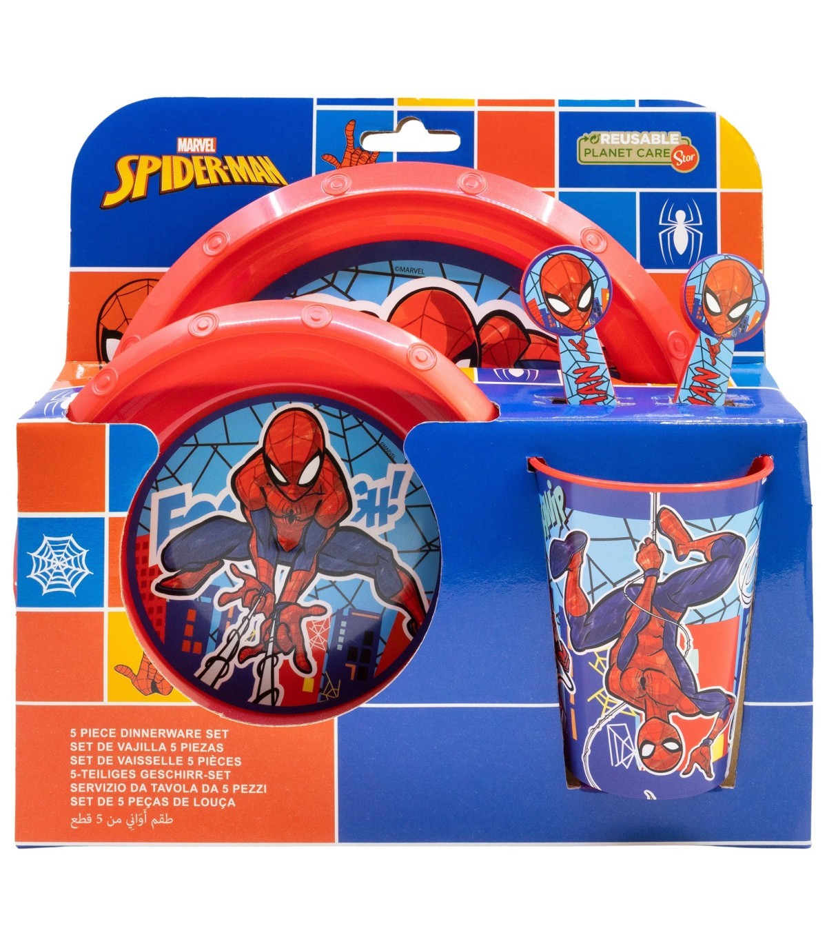 SET EASY 5 PCS (PLATO, CUENCO, VASO Y CUBIERTOS) EN CAJA SPIDERMAN MOB RULES
