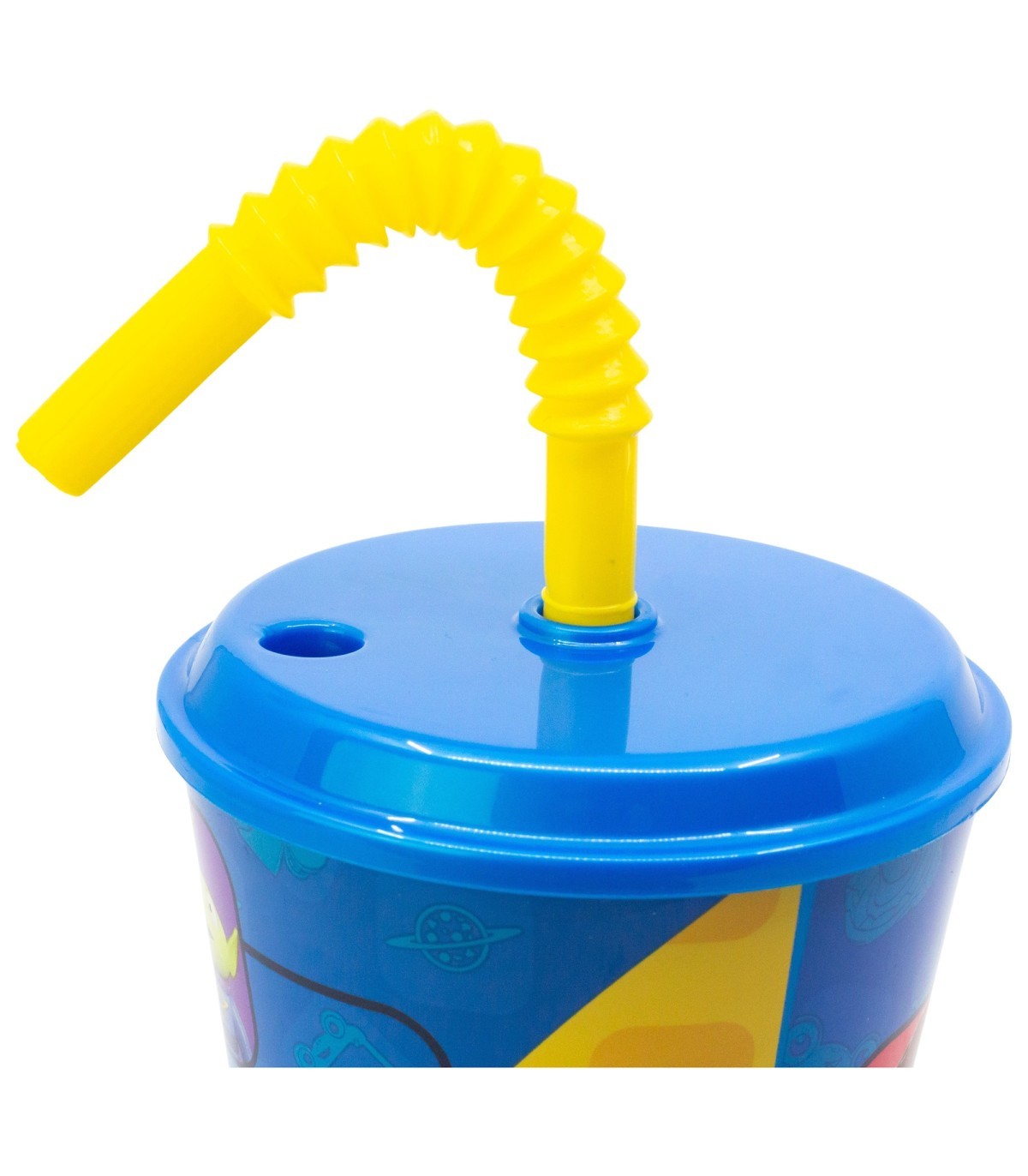 Cómodo vaso con tapa y pajita flexible, fabricado en material resistente y decorado con algunos de los protagonistas principales del mundo del cine y la televisión infantil. Gracias a su tapa y a su pajita, los niños podrán beber de forma cómoda y segura, evitando salpicaduras y derrames accidentales.