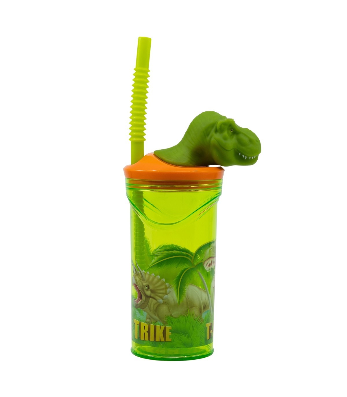 Vaso infantil reutilizable con pajita y tapa con figurita 3D y capacidad de 360 ml de Dinosaurios