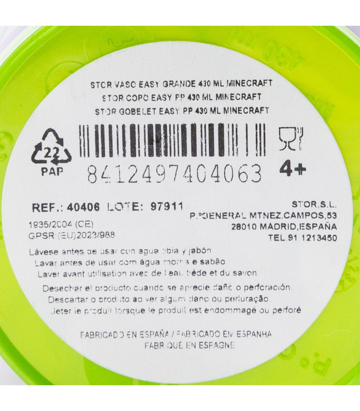 Lave el producto antes del primer uso y después de cada uso. No utilice esponjas abrasivas ni productos químicos agresivos para limpiarlo. Guárdelo en un lugar seco y protegido del polvo. No sobrecalentar el producto. Úselo según las recomendaciones indicadas. Reemplace el producto si presenta grietas, deformaciones o cambios de color o textura. El uso inadecuado o daños visibles pueden comprometer su idoneidad para el contacto con alimentos. Apto para microondas. Apto para lavavajillas. Edad de uso: 4+.