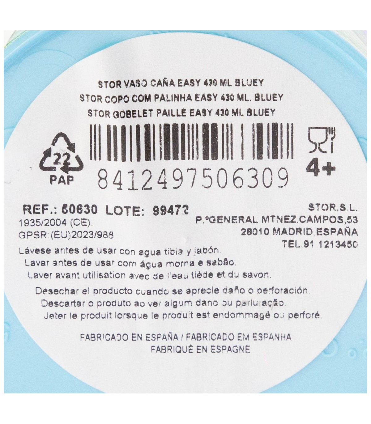 Vaso infantil reutilizable con tapa y pajita de 430 ml de Bluey