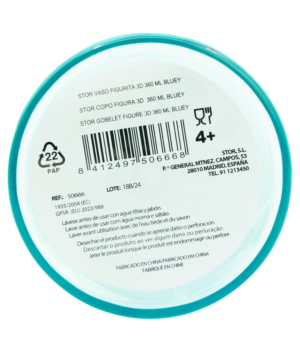 Lave el producto antes del primer uso y después de cada uso. No utilice esponjas abrasivas ni productos químicos agresivos para limpiarlo. Guárdelo en un lugar seco y protegido del polvo. No sobrecalentar el producto. Úselo según las recomendaciones indicadas. Reemplace el producto si presenta grietas, deformaciones o cambios de color o textura. El uso inadecuado o daños visibles pueden comprometer su idoneidad para el contacto con alimentos. No apto para microondas. No apto para lavavajillas. Edad de uso: 4+.