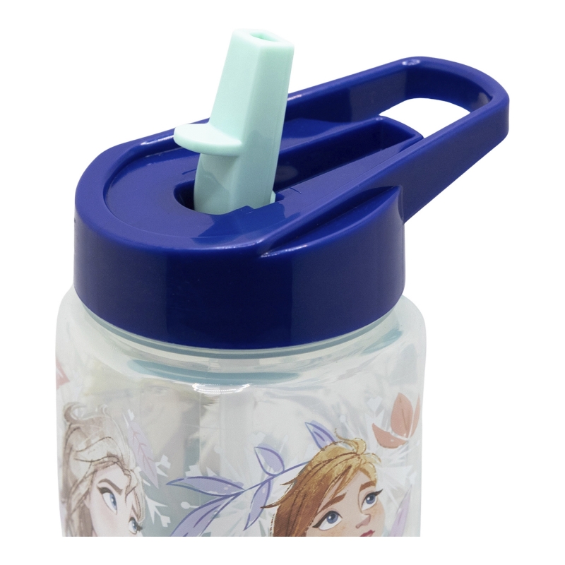 Botella de agua infantil de plástico de 510 ml con tapón y pajita de Frozen