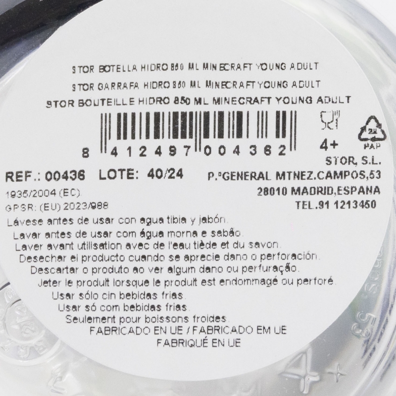 Elegant, reusable plastic bottle decorated with elegant designs based on some of the most representative movie characters. It has a splash spill proof metal screw-on cap. Ideal to take your favourite drink with you wherever you go or to always have it on hand at your normal place of work or study. - Capacity: 850 ml - BPA free Wash the product before first use and after each use. Do not use abrasive sponges or harsh chemicals for cleaning. Store in a dry place, protected from dust. Do not overheat the product. Use it according to the indicated recommendations. Replace the product if it shows cracks, deformations, or changes in colour or texture. Improper use or visible damage may compromise its suitability for contact with food. Not microwave safe. Not dishwasher safe. Recommended age: 4+ years.