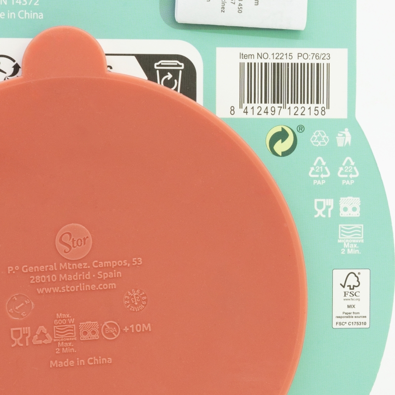 For your child's safety and health: WARNING! Always use this product with adult supervision. Before each use, inspect the product. Throw away at the first sign of damage or weakness. Cleaning, sterilising, storing and use: Wash the product before first use and after each use. Clean the product and its accessories thoroughly with warm soapy water. Do not use bleach or other harsh cleaning products. Store in a dry place, free from dust. Do not expose the product to direct sunlight or heat sources, or leave it in disinfectant ("sterilising solution") for longer than recommended, as this may damage it. Replace the product if it shows cracks, deformations, or changes in colour or texture. Use it according to the indicated recommendations. Improper use or visible damage may compromise its suitability for contact with food. Please read the instructions carefully and keep the packaging for future reference. Safety instructions: Keep components not in use out of the reach of children. Never attach to cords, ribbons, laces or loose parts of clothing. The child can be strangled. Take extra care when microwave heating. Do not overheat the product. Always stir heated food to ensure even heat distribution and test the temperature before serving. EN 14372 standard compliant.