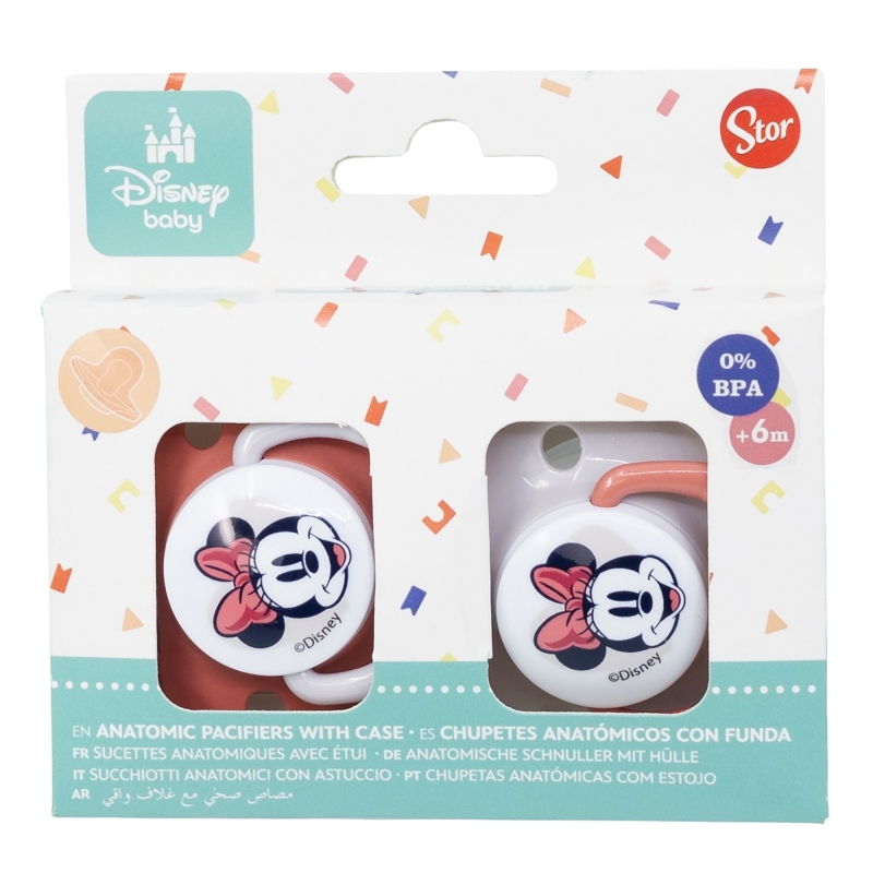 BABY 2 PCS SET ORTHODONTIC PACIFIER SILICONE +6 M WITH COVER MINNIE MOUSE HEART FULL | Stor BrandRecipient :