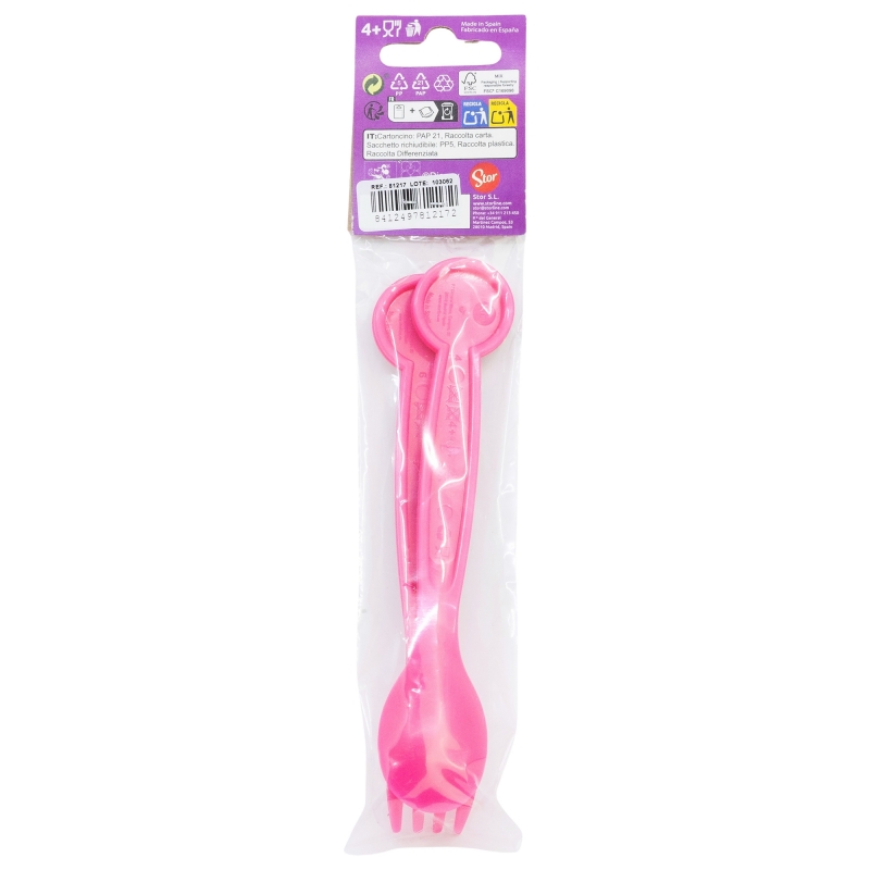 Set de 2 cubiertos infantiles reutilizables de plástico compuesto de tenedor y cuchara de MinnieDestinatario :