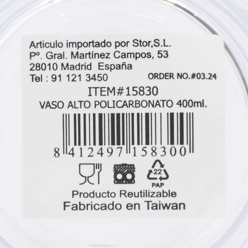 TALL TUMBLER POLICARBONATE 400 ML. | Stor BrandRecipient :