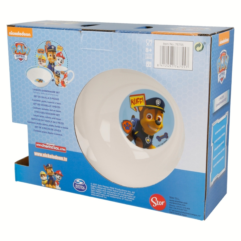 SET MERIENDA CERAMICA (PLATO, CUENCO, TAZA) EN CAJA DE REGALO 3 PCS PAW PATROL