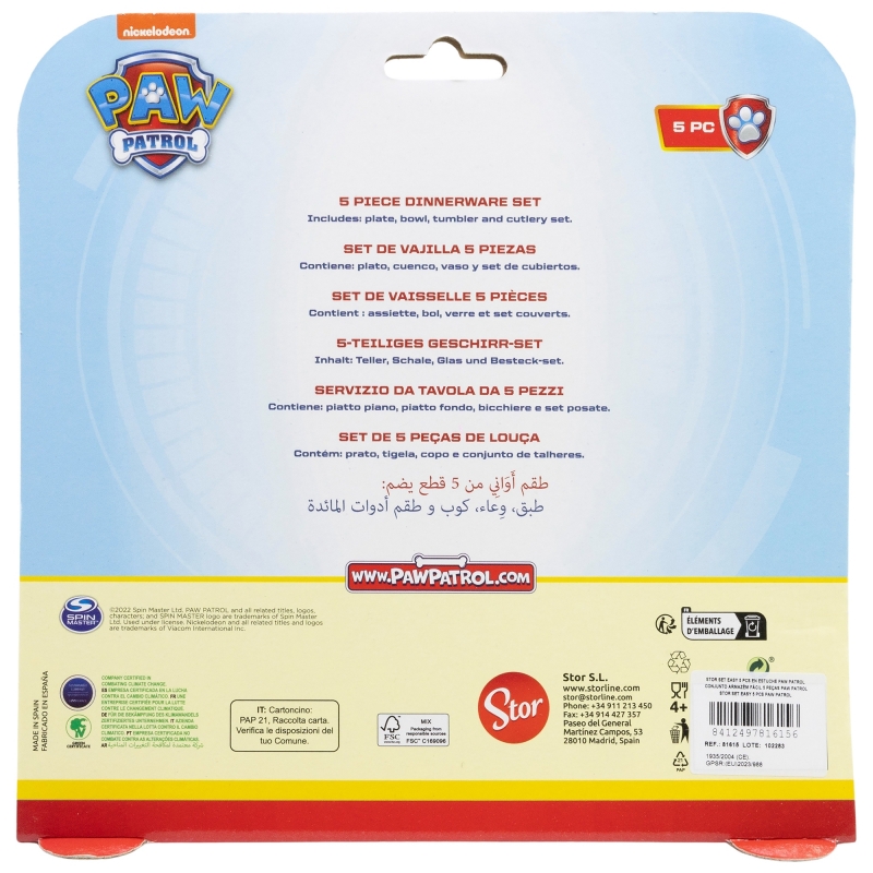 SET EASY 5 PCS (PLATO, CUENCO, VASO Y CUBIERTOS) EN CAJA PAW PATROL BOY RESCUE PUPS