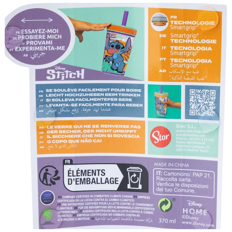 DROP SAFE SILICONE STRAW PP TUMBLER 370 ML STITCH ALOHA | Stor BrandRecipient :
