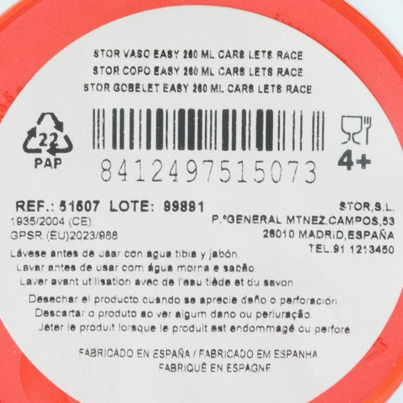 Lave el producto antes del primer uso y después de cada uso. No utilice esponjas abrasivas ni productos químicos agresivos para limpiarlo. Guárdelo en un lugar seco y protegido del polvo. No sobrecalentar el producto. Úselo según las recomendaciones indicadas. Reemplace el producto si presenta grietas, deformaciones o cambios de color o textura. El uso inadecuado o daños visibles pueden comprometer su idoneidad para el contacto con alimentos. Apto para microondas. Apto para lavavajillas. Edad de uso: 4+.