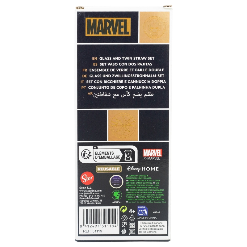 GLASS & TWIN STRAWS SET 480 ML MARVEL GOLDEN TREASURE | Stor BrandRecipient :