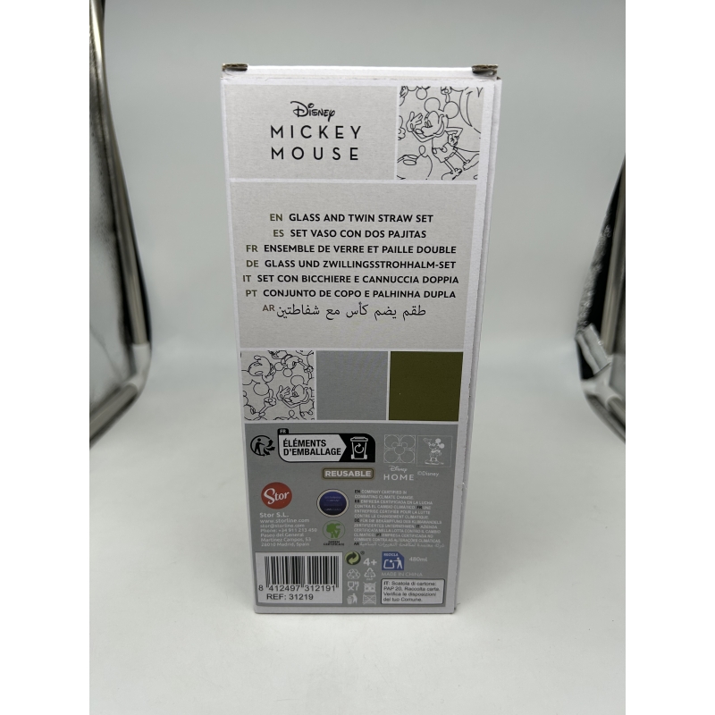GLASS & TWIN STRAW SET 480 ML MICKEY MOUSE SIGNATURE | Stor Brand