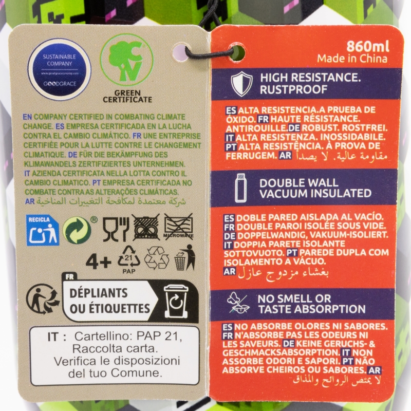 Imprimir informaciónCOOL INSULATED STAINLESS STEEL TUMBLER WITH HANDLE 860 ML MINECRAFT ICONICMONO