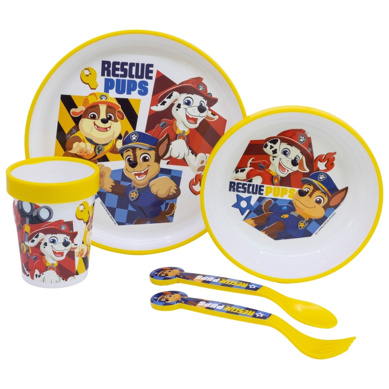 5 PCS MCIRO SET (PLATE, BOWL, TUMBLER, CUTLERY) PAW PATROL BOY RESCUE PUPS | Stor Brand