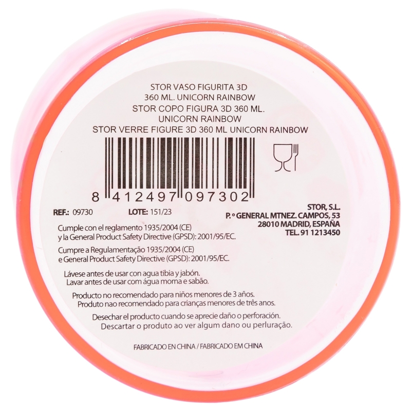 Vaso infantil reutilizable con pajita y tapa con figurita 3D y capacidad de 360 ml de Unicornios y Arco Iris y Arco IrisDestinatario :