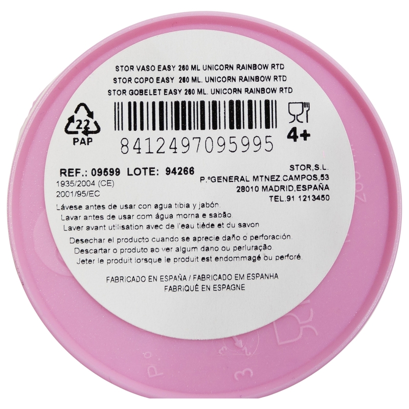 Vaso infantil de plástico reutilizable de 260 ml de Unicornios y Arco IrisDestinatario :