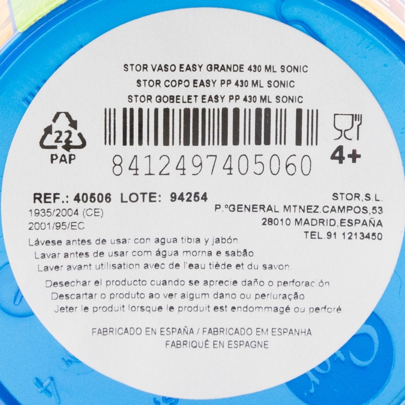 Lave el producto antes del primer uso y después de cada uso. No utilice esponjas abrasivas ni productos químicos agresivos para limpiarlo. Guárdelo en un lugar seco y protegido del polvo. No sobrecalentar el producto. Úselo según las recomendaciones indicadas. Reemplace el producto si presenta grietas, deformaciones o cambios de color o textura. El uso inadecuado o daños visibles pueden comprometer su idoneidad para el contacto con alimentos. Apto para microondas. Apto para lavavajillas. Edad de uso: 4+.