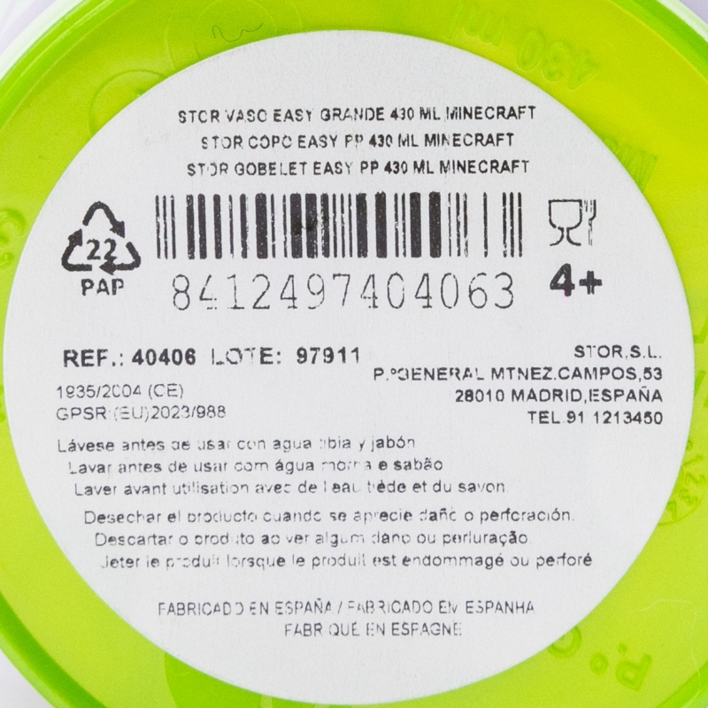 Vaso infantil de plástico reutilizable de 430 ml de MinecraftDestinatario :