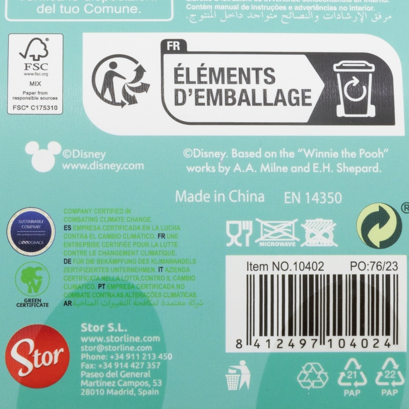 Para la seguridad de su bebé: ¡ADVERTENCIA! La succión continua y prolongada de líquidos puede causar caries. Comprobar siempre la temperatura de la comida antes de dar el alimento. Desechar en los primeros signos de daño o rotura. Mantener fuera del alcance de los niños todos los componentes que no estén en uso. Nunca unirlo a cordones, cintas, lazos o partes sueltas de la ropa. Su niño podría estrangularse. Nunca usar la tetina como chupete. Usar siempre este producto bajo la supervisión de un adulto. Limpieza, esterilización, almacenamiento y uso: Limpie el producto antes del primer uso y después de cada uso. Por razones de higiene, esterilícelo hirviéndolo en agua durante al menos 5 minutos o utilizando un esterilizador de vapor. Lave el producto y sus accesorios cuidadosamente con agua tibia y jabón. No utilice lejía ni otros productos de limpieza agresivos. Guárdelo en un lugar seco y libre de polvo. No exponga la tetina a la luz solar directa ni a fuentes de calor, ni la deje en desinfectantes ("soluciones esterilizantes") por más tiempo del recomendado, ya que podría dañarse. Inspeccione la tetina antes de cada uso, estirándola y tirando de ella en todas las direcciones. Deséchela si detecta signos de desgaste, daños o perforaciones (por ejemplo, si el bebé la ha mordido). Sustituya el producto si presenta grietas, deformaciones o cambios en el color o la textura. Úselo de acuerdo con las recomendaciones indicadas. El uso inadecuado o los daños visibles pueden comprometer su idoneidad para el contacto con alimentos. Lea atentamente las instrucciones y conserve el envase para futuras consultas. Instrucciones de seguridad: Para preparar los alimentos, siga las instrucciones del fabricante. Tenga especial cuidado al calentar en el microondas. Nunca caliente un producto cerrado en el microondas. Aunque no se recomienda, si decide usar el microondas para calentar el contenido, asegúrese de introducir solo el cuerpo del biberón, vaso o taza. Retire el disco, tetina, tapa o cualquier otro componente antes de calentar. La temperatura exterior del producto puede no reflejar la temperatura real de su contenido. Agite o remueva bien después de calentar para garantizar una distribución uniforme del calor. No sobrecaliente el producto. Las caries dentales pueden producirse incluso sin uso de productos o líquidos azucarados. Esto puede ocurrir si se permite que el bebé o niño utilice el biberón de forma continua durante largos periodos del día o, especialmente, durante la noche, cuando el nivel de saliva es menor. Nunca deje al bebé alimentarse solo. La mayoría de los accidentes ocurren cuando los bebés son dejados solos mientras beben o comen, debido a caídas con el artículo o a su desmontaje. Cumple con la norma EN 14350:2020+A1:2023.