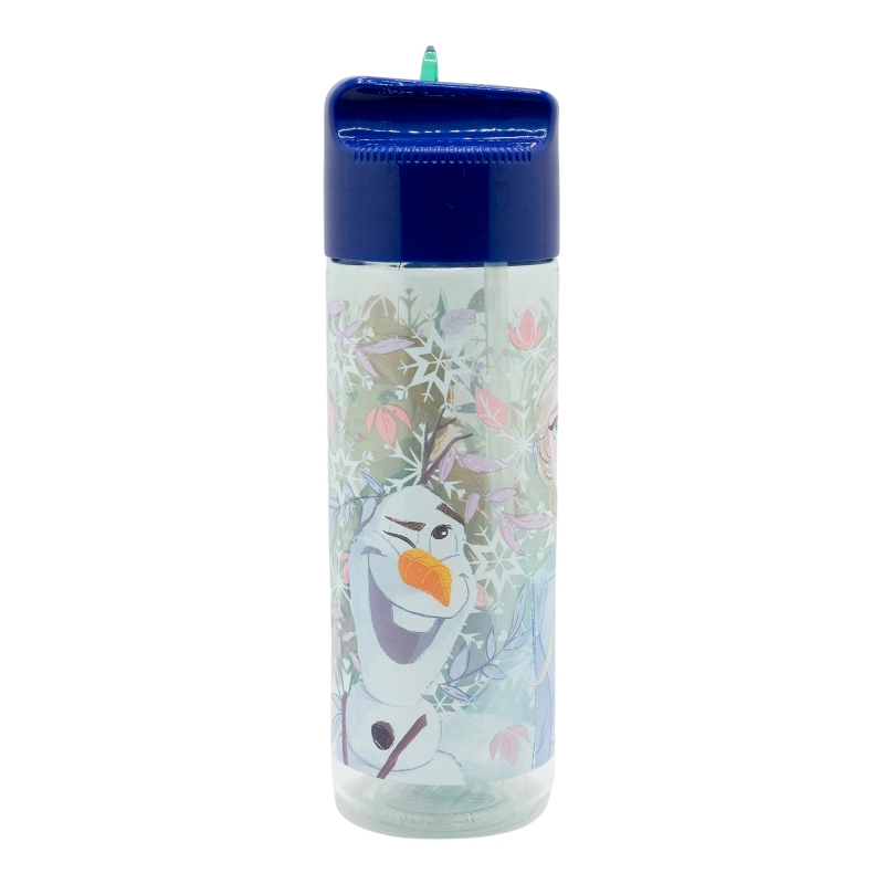 Botella de agua infantil de plástico de 510 ml con tapón y pajita de Frozen