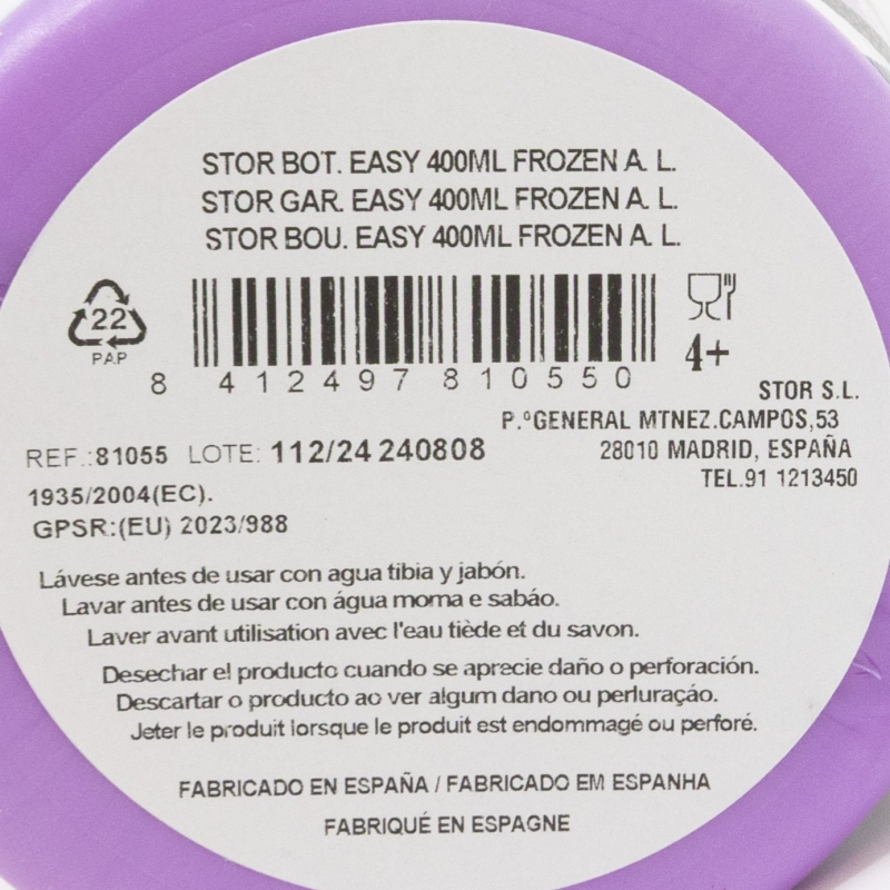 Lave el producto antes del primer uso y después de cada uso. No utilice esponjas abrasivas ni productos químicos agresivos para limpiarlo. Guárdelo en un lugar seco y protegido del polvo. No sobrecalentar el producto. Úselo según las recomendaciones indicadas. Reemplace el producto si presenta grietas, deformaciones o cambios de color o textura. El uso inadecuado o daños visibles pueden comprometer su idoneidad para el contacto con alimentos. No apto para microondas. No apto para lavavajillas. Edad de uso: 4+.