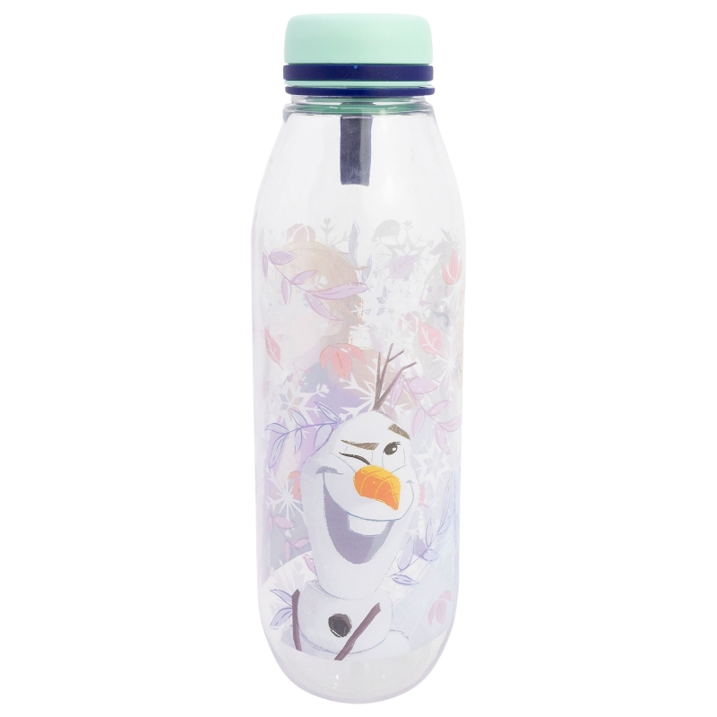 Botella de agua infantil de plástico de 510 ml con tapón y pajita de Frozen