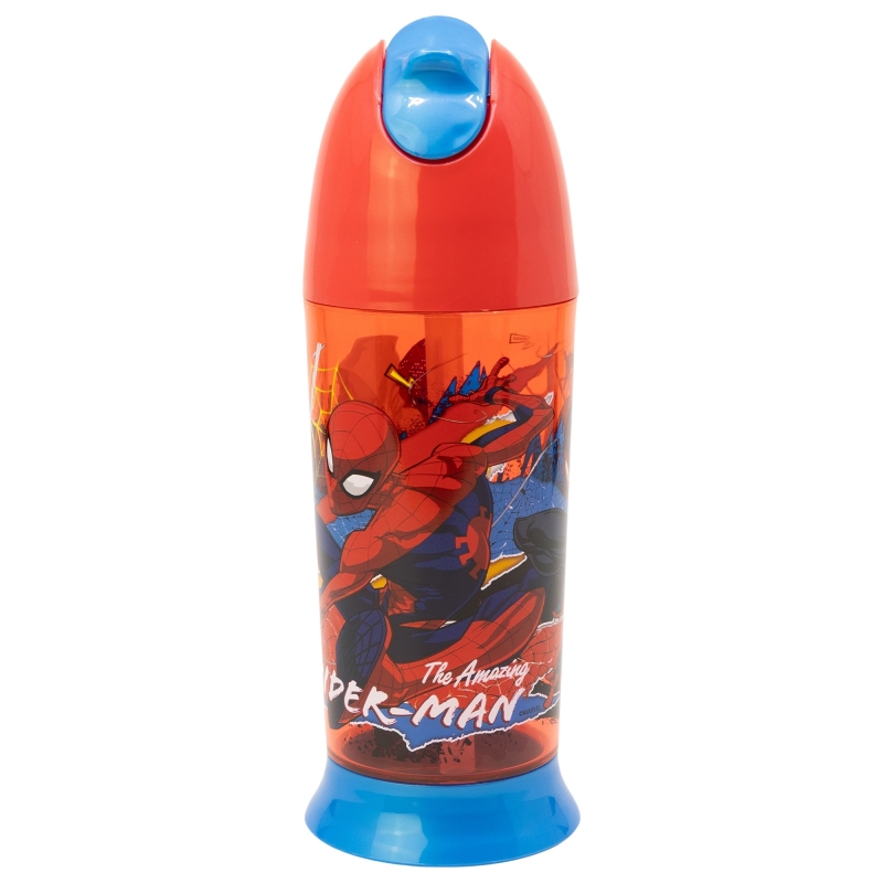 Botella de agua infantil de plástico de 510 ml con tapón y pajita de Spider-man