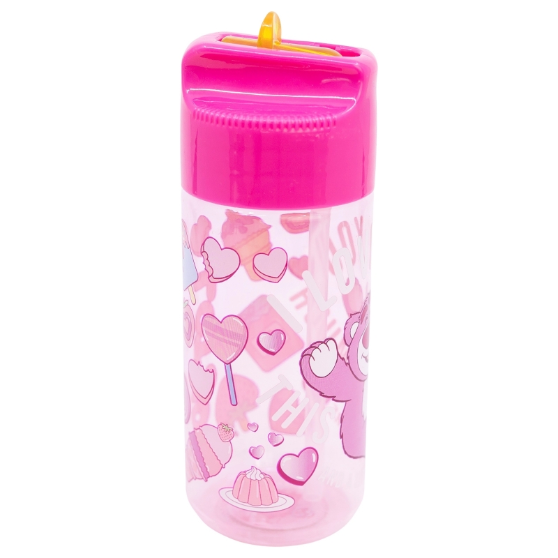 Botella de agua infantil de plástico de 510 ml con tapón y pajita de Minnie Mouse