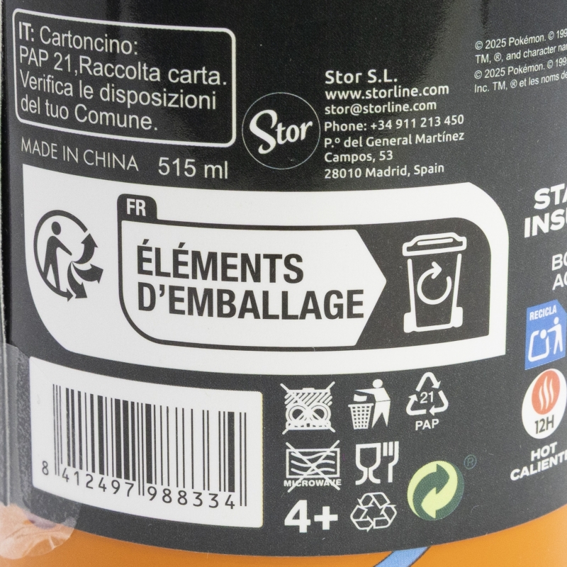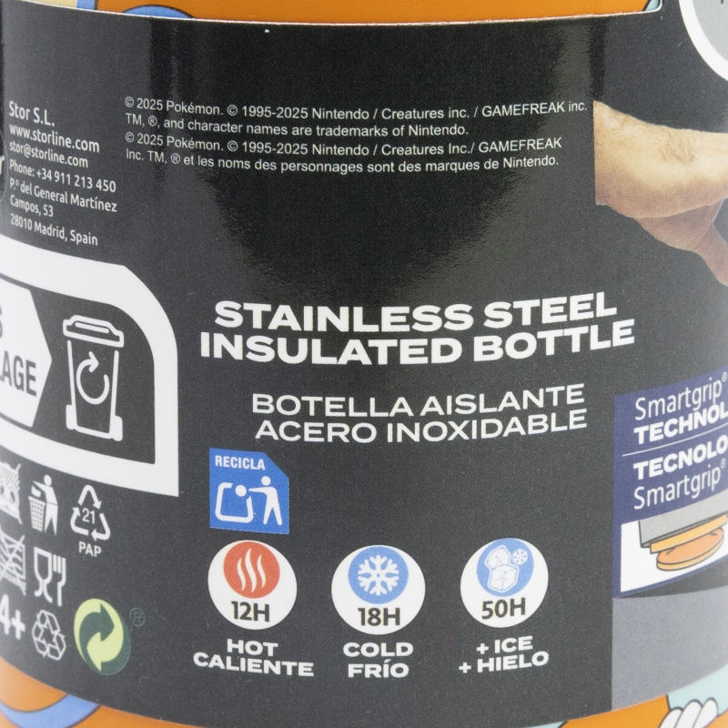 Botella termo de acero inoxidable antivuelco de 515 ml de PokemonDestinatario :