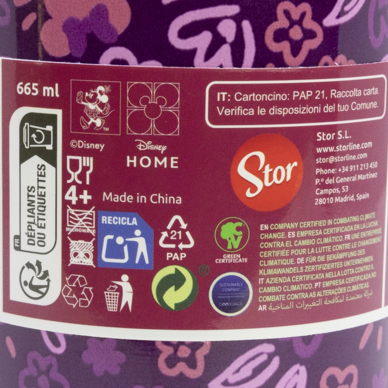 Lave el producto antes del primer uso y después de cada uso. No utilice esponjas abrasivas ni productos químicos agresivos para limpiarlo. Guárdelo en un lugar seco y protegido del polvo. No sobrecalentar el producto. Úselo según las recomendaciones indicadas. Reemplace el producto si presenta grietas, deformaciones o cambios de color o textura. El uso inadecuado o daños visibles pueden comprometer su idoneidad para el contacto con alimentos. No apto para microondas. No apto para lavavajillas. Edad de uso: 4+.