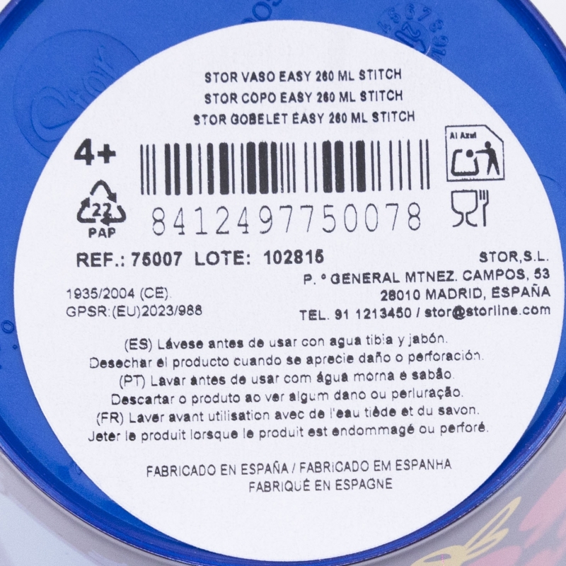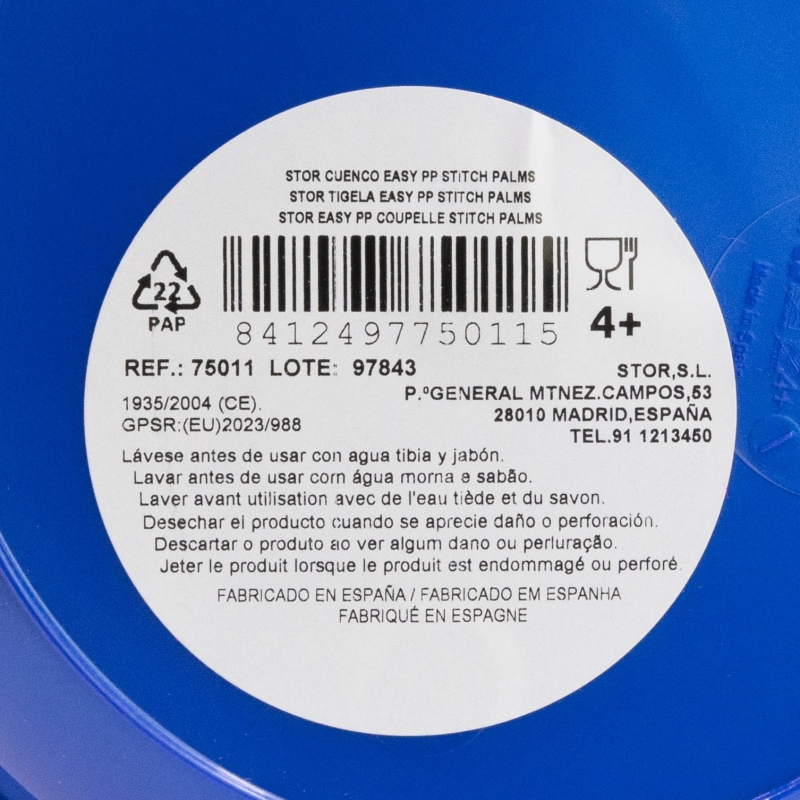 Lave el producto antes del primer uso y después de cada uso. No utilice esponjas abrasivas ni productos químicos agresivos para limpiarlo. Guárdelo en un lugar seco y protegido del polvo. No sobrecalentar el producto. Úselo según las recomendaciones indicadas. Reemplace el producto si presenta grietas, deformaciones o cambios de color o textura. El uso inadecuado o daños visibles pueden comprometer su idoneidad para el contacto con alimentos. Apto para microondas. Apto para lavavajillas. Edad de uso: 4+.