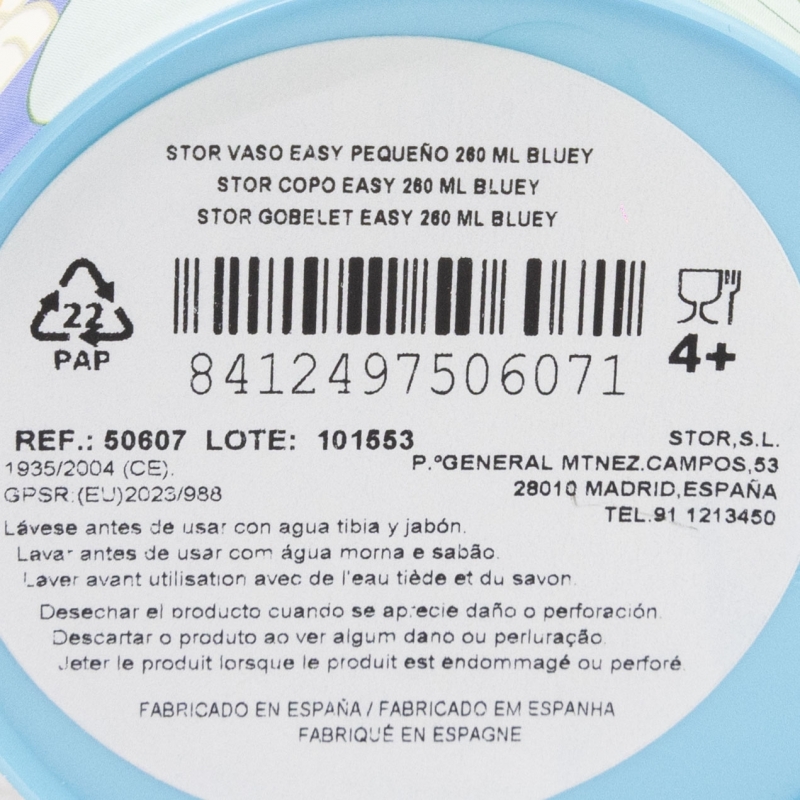 Lave el producto antes del primer uso y después de cada uso. No utilice esponjas abrasivas ni productos químicos agresivos para limpiarlo. Guárdelo en un lugar seco y protegido del polvo. No sobrecalentar el producto. Úselo según las recomendaciones indicadas. Reemplace el producto si presenta grietas, deformaciones o cambios de color o textura. El uso inadecuado o daños visibles pueden comprometer su idoneidad para el contacto con alimentos. Apto para microondas. Apto para lavavajillas. Edad de uso: 4+.