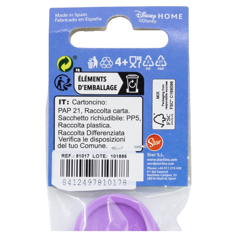 Lave el producto antes del primer uso y después de cada uso. No utilice esponjas abrasivas ni productos químicos agresivos para limpiarlo. Guárdelo en un lugar seco y protegido del polvo. No sobrecalentar el producto. Úselo según las recomendaciones indicadas. Reemplace el producto si presenta grietas, deformaciones o cambios de color o textura. El uso inadecuado o daños visibles pueden comprometer su idoneidad para el contacto con alimentos. No apto para microondas. No apto para lavavajillas. Edad de uso: 4+.